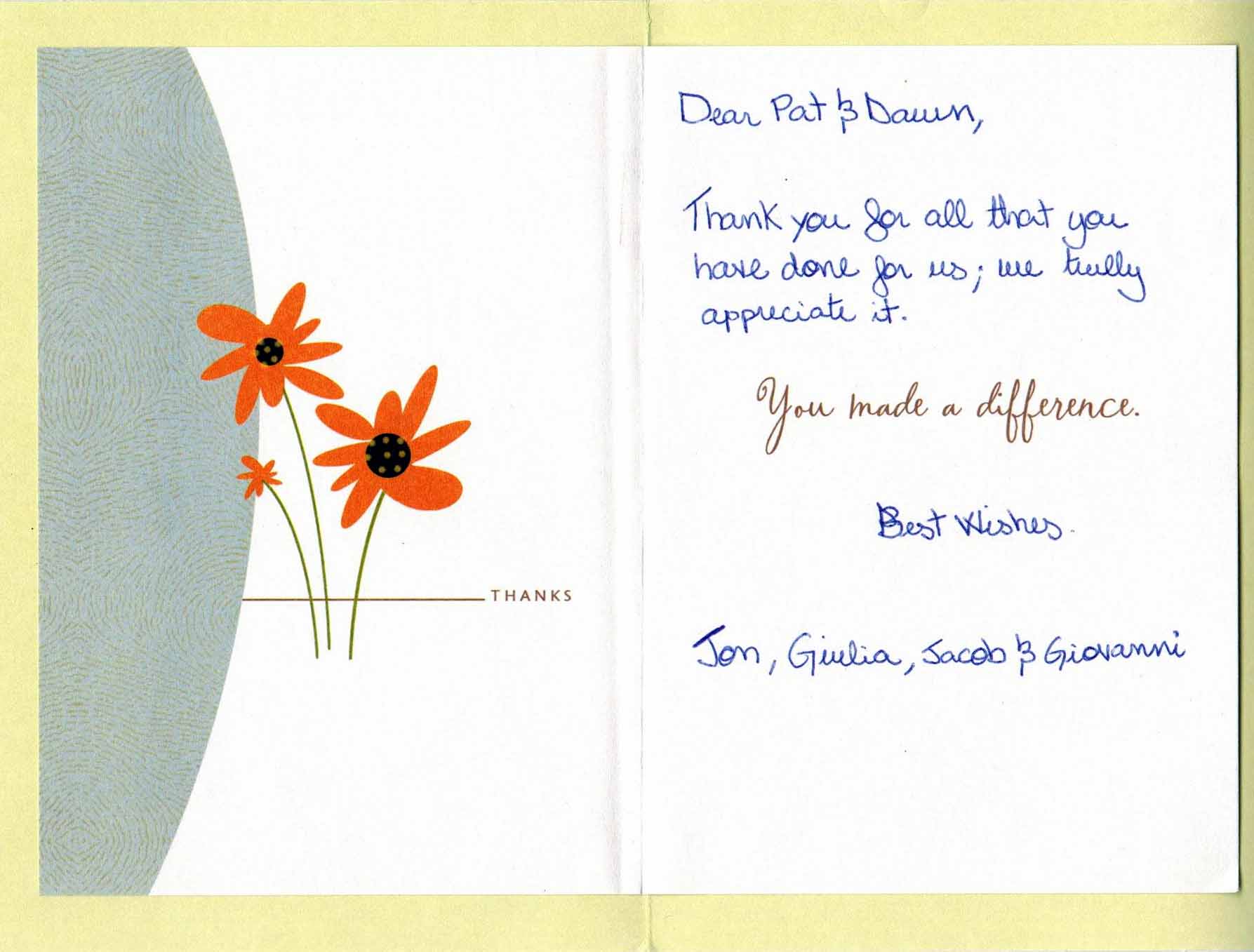 We were so sad to see this lovely family move back home! But were so surprised and honoured to receive this thank you card when they moved out.